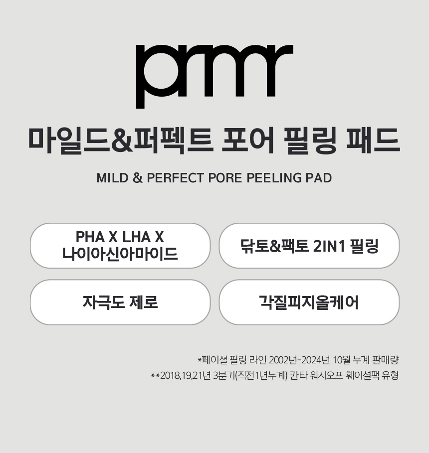 prmr 마일드&퍼펙트 포어 필링 패드 MILD & PERFECT PORE PEELING PAD