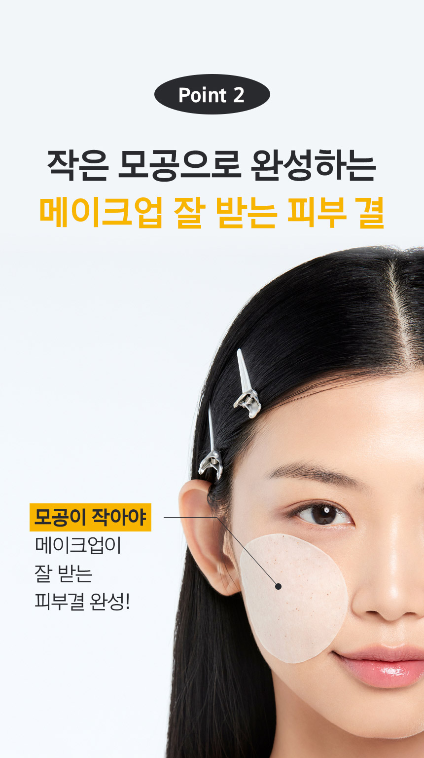 Point 2 작은 모공으로 완성하는 메이크업 잘 받는 피부 결 모공이 작아야 메이크업이 잘 받는 피부결 완성!