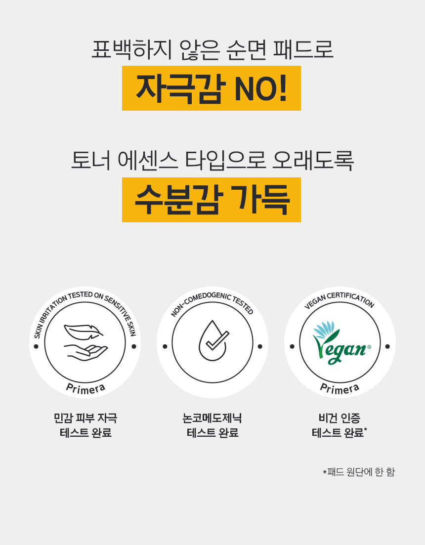 표백하지 않은 순면 패드로 자극감 NO! 토너 에센스 타입으로 오래도록 수분감 가득